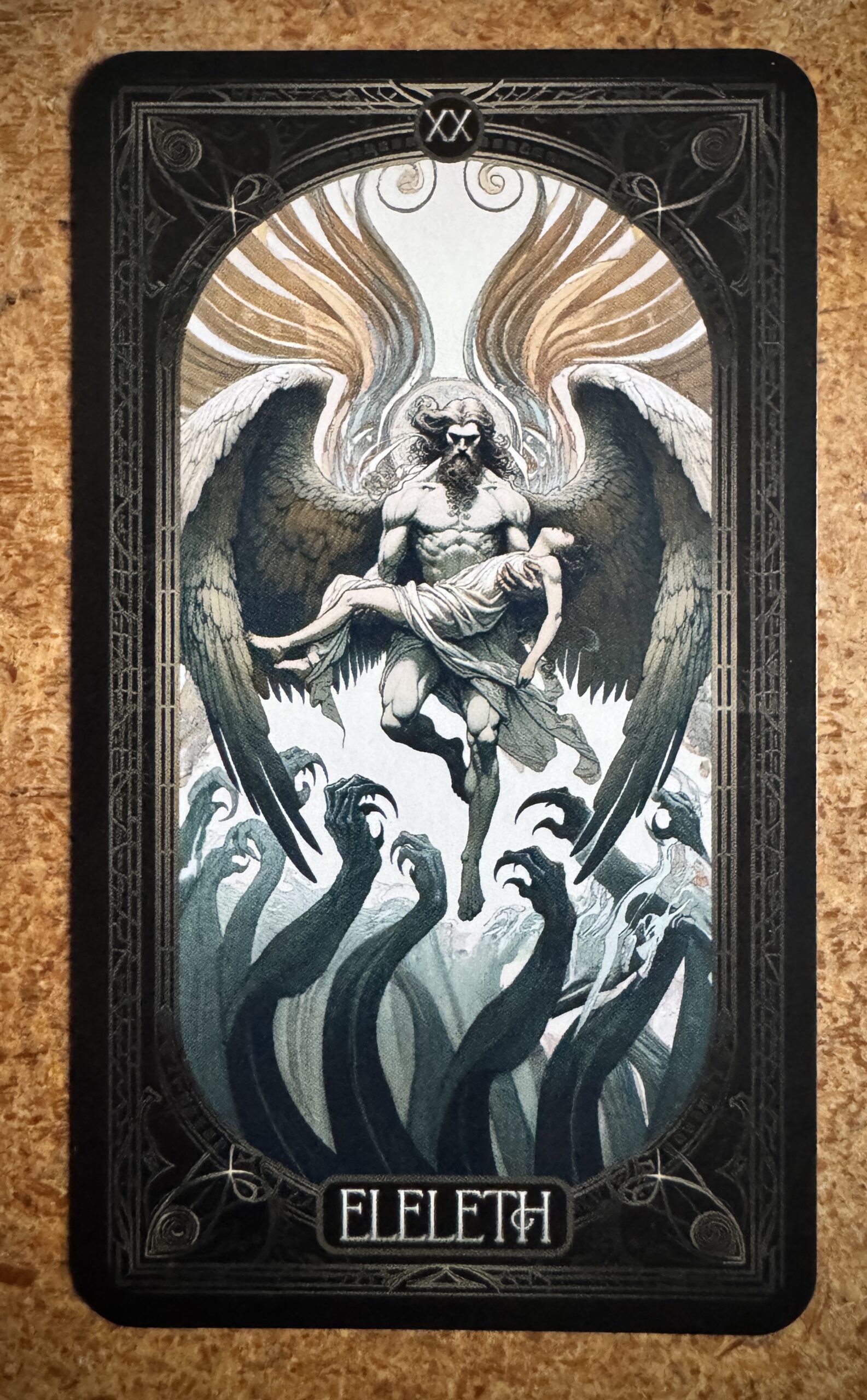 Judgment in traditional tarot represents awakening, reckoning, the moment when everything becomes clear and you must act on that clarity. Eleleth as Judgment embodies this perfectly: he facilitates the moment of clear seeing, the elevation of perspective that allows true judgment (in the sense of discernment, not condemnation), the rescue that’s also an awakening.